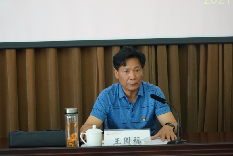 王國福宣讀《中共河南工業(yè)貿(mào)易職業(yè)學(xué)院委員會關(guān)于舉辦2021年副科級以上干部黨史學(xué)習教育培訓(xùn)班的通知》,明確了培訓(xùn)主題和形式,強調(diào)了“提高認識”“注重實效”“嚴格紀律”的培訓(xùn)要求。