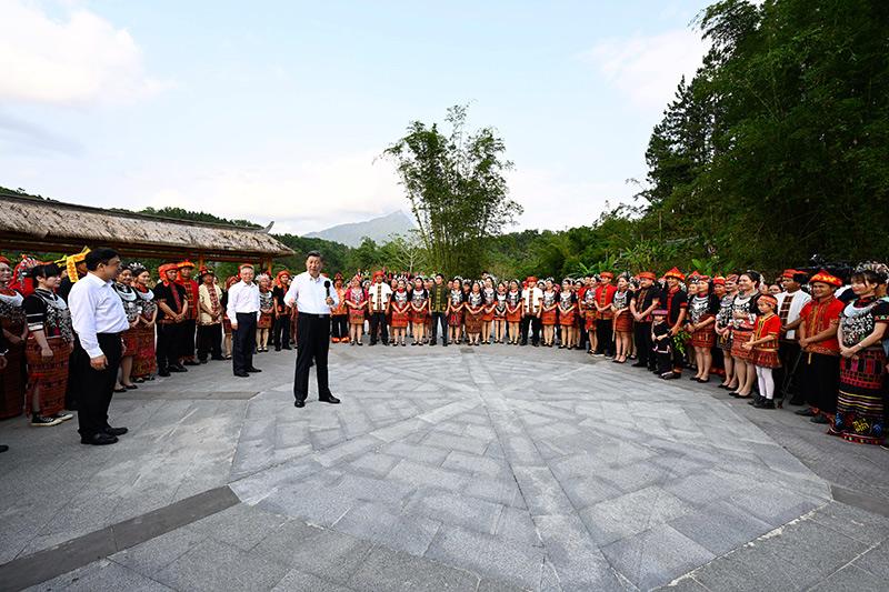 4月10日至13日,中共中央總書記、國家主席、中央軍委主席習近平在海南考察。這是11日下午,習近平在五指山市水滿鄉(xiāng)毛納村同村民們親切交流。新華社記者 李學仁 攝