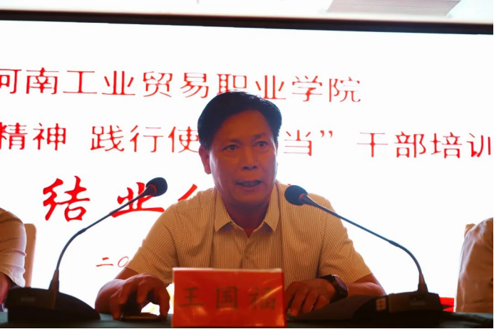 在7月5日的開班儀式上,王國福宣讀《中共河南工業貿易職業學院委員會關于舉辦2022年副科級以上干部提升能力作風建設培訓工作方案》。