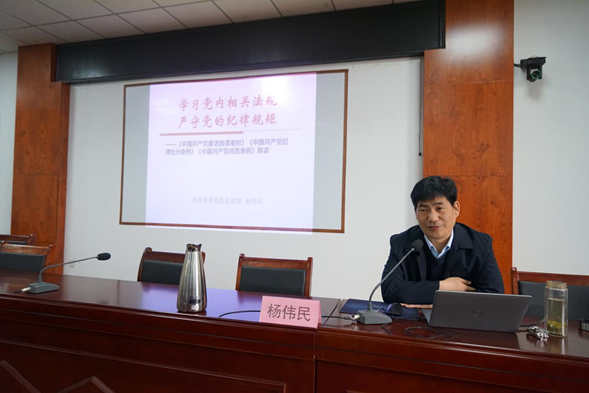 中共河南省委黨校楊偉民教授做了題為《學習黨內相關法規(guī),嚴守黨的紀律規(guī)矩》的講座,他結合黨史,分析了《中國共產黨廉潔自律準則》《中國共產黨紀律處分條例》和《中國共產黨問責條例》三項重大黨內法規(guī)出臺的背景,講解了準則條例中的重點條文,強調了反腐敗斗爭的嚴峻性、復雜性、艱巨性和長期性,給參訓學員在思想上敲響了警鐘,增強了大家的規(guī)矩意識和風險意識,樹立起正確的權力觀、價值觀。