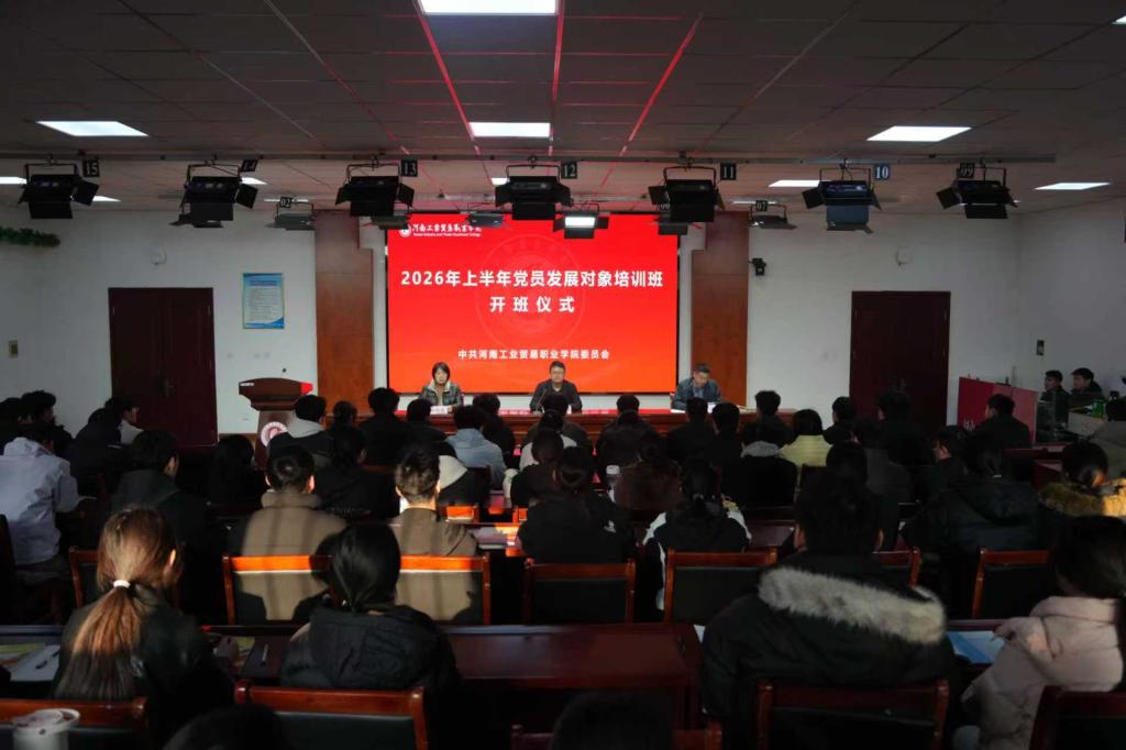 會上,黨委組織部副部長韓向霞宣讀了《中共河南工業貿易職業學院委員會組織部(黨校)關于舉辦2026年上半年黨員發展對象培訓班的通知》,全校93名學員參加開班儀式。