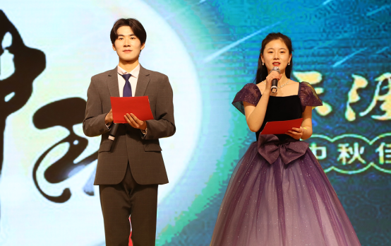 第四環節來自藝術設計學院馬小婷和工商管理學院郭佳奇一起模擬主持的迎中秋晚會給線上觀眾們帶來身臨其境的效果。