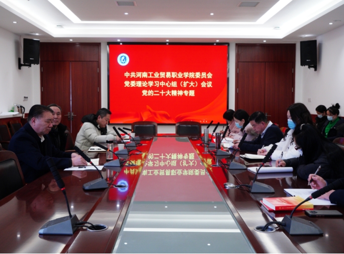 2月22日,河南工業(yè)貿(mào)易職業(yè)學(xué)院召開(kāi)黨委理論學(xué)習(xí)中心組(擴(kuò)大)會(huì)議,專題學(xué)習(xí)黨的二十大精神,進(jìn)一步安排部署相關(guān)學(xué)習(xí)宣傳貫徹工作。校黨委書(shū)記劉合行,黨委委員、副校長(zhǎng)李振偉、劉衛(wèi)紅、王鉻出席會(huì)議,各單位黨政負(fù)責(zé)人參加會(huì)議。劉合行主持會(huì)議并講話。