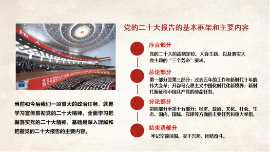 黨的二十大報告用三萬兩千多字的篇幅,通過15個部分的篇章(除了序言和結束語外),給我們描繪了未來五年乃至更長時期黨和國家事業發展的實踐基礎、理論指導、基本路徑和重大舉措。為了學習宣傳好黨的二十大精神,激發全體師生以昂揚的精神狀態投入到學校跨越式發展的進程中,馬克思主義學院將以史論相結合的方式,參考專家解讀、整合權威視頻和圖片,對二十大報告進行通俗化講解。