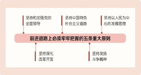 實現中國式現代化必須牢牢把握五大重要原則。這五項原則從根本保證、旗幟引領、根本立場、活力源泉和精神力量五方面,為全面建設社會主義現代化國家提供了根本遵循。只要我們牢牢把握住這個內涵豐富、邏輯嚴密的有機整體,就能全力戰勝前進道路上各種困難和挑戰,以咬定青山不放松的執著奮力實現既定目標。